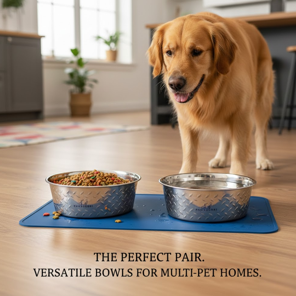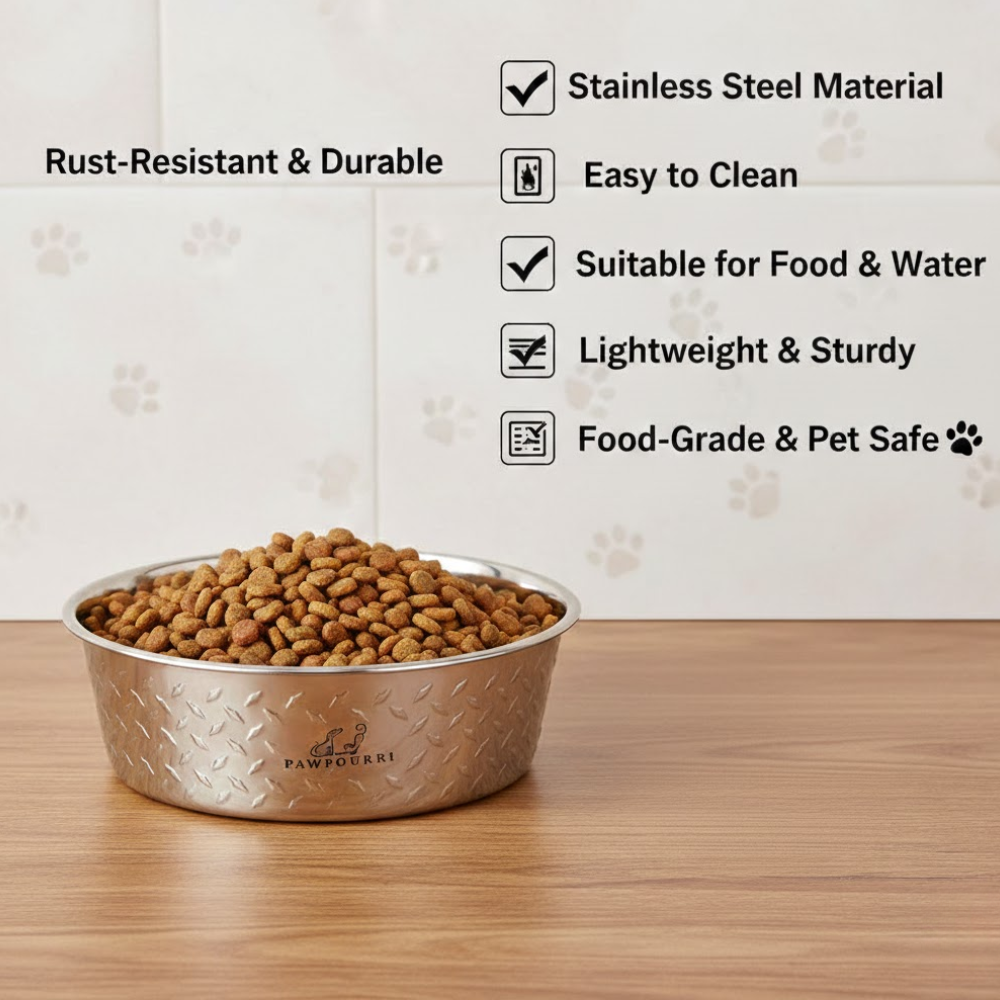 Premium Design - The Pawpourri Diamond Plate Bowls are heavy-weight bowls with a full rubber bottom. The side walls are stamped with a signature diamond plate design giving these bowls a chic outer wall.