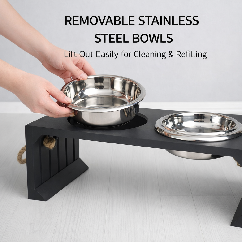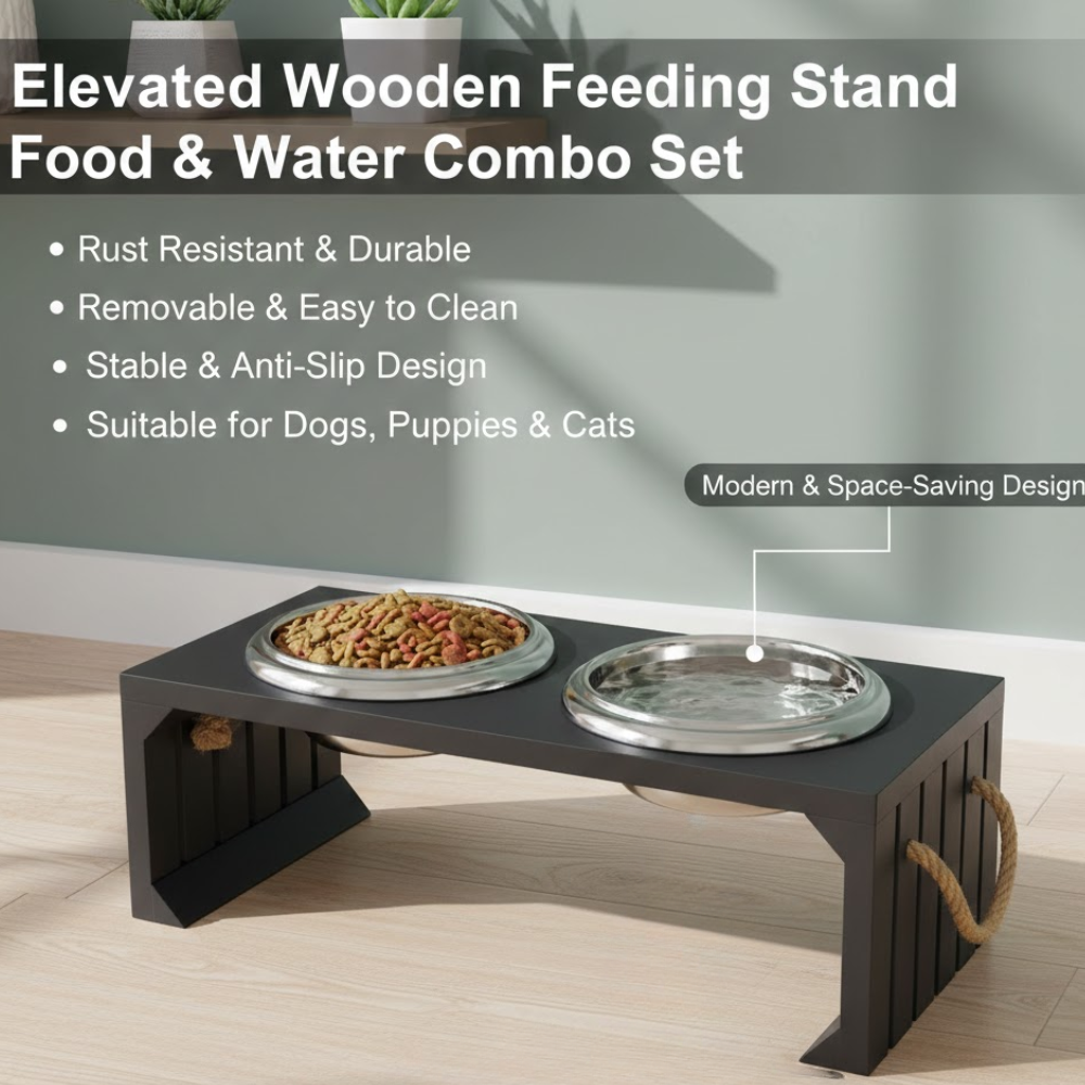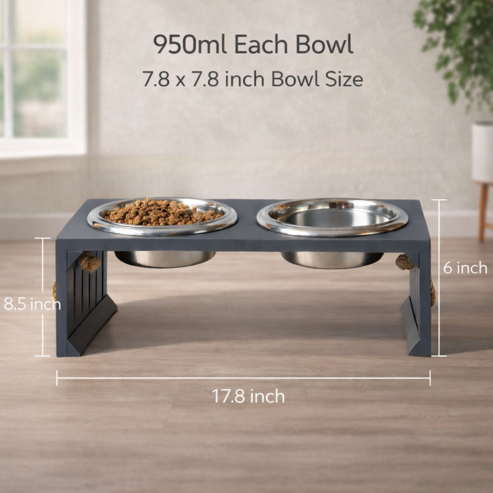 Sturdy Stand - The Sturdy bowl stand is made with high-quality solid wood which prevents your pet from accidentally knocking over food or water. Itβs perfect for keeping the area clean and hygienic for your cats, small dogs and puppies.