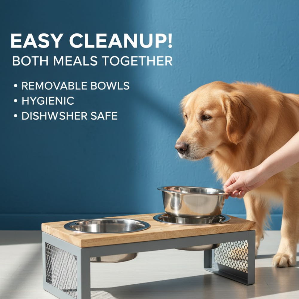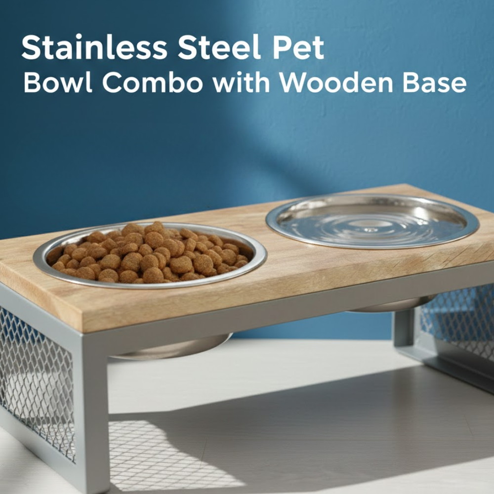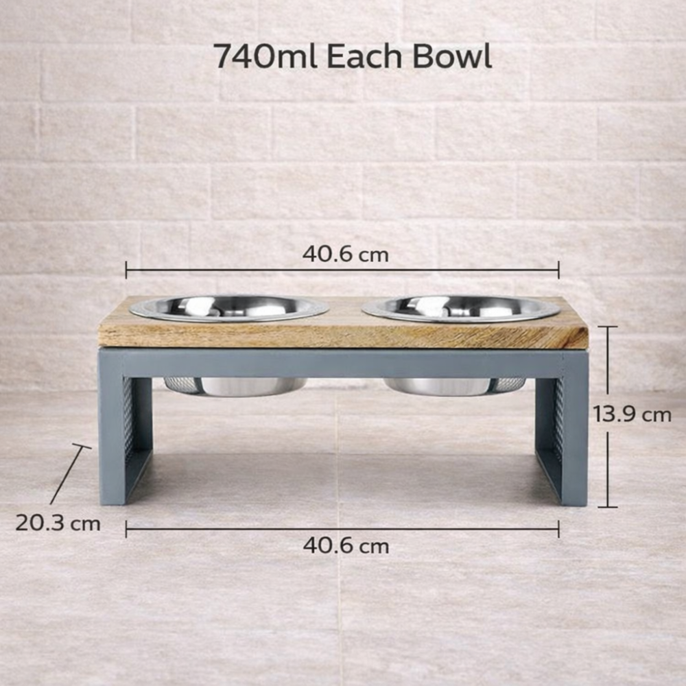 Durable - Constructed with a sturdy quality wood platform and 2 high-grade stainless steel bowls.