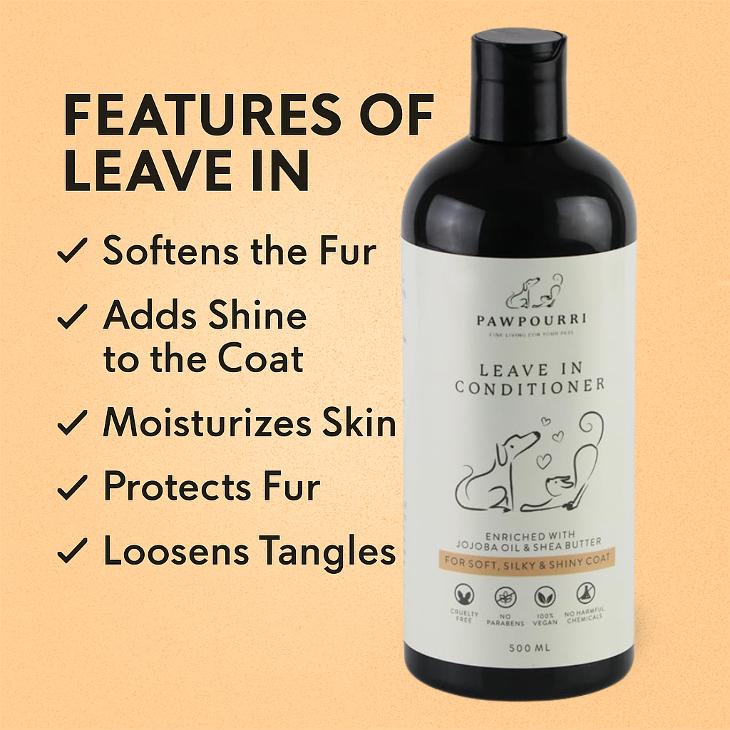 Easy Application: Simply apply our leave-in conditioner to your pet's fur and leave it in—no rinsing required! It's a convenient and hassle-free way to care for your pet's coat.