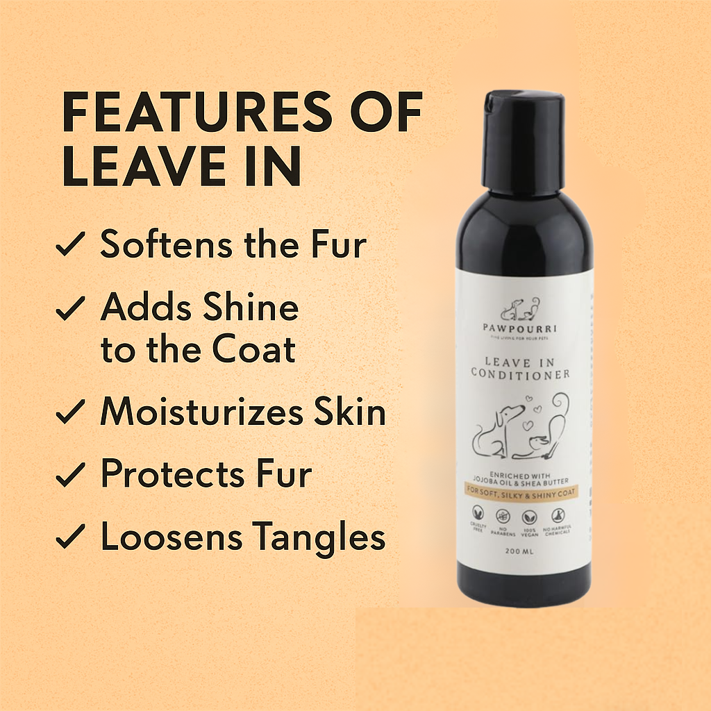 Easy Application: Simply apply our leave-in conditioner to your pet's fur and leave it in—no rinsing required! It's a convenient and hassle-free way to care for your pet's coat.