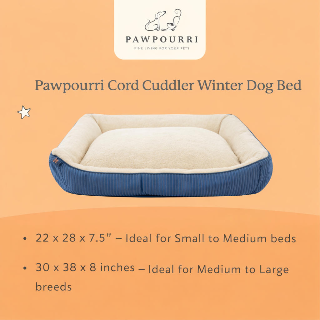 Give your pet the perfect mix of warmth, comfort, and style with the Pawpourri Cord Cuddler Winter Dog Bed. Designed with a luxurious corduroy exterior and a super-soft sherpa seat, it creates a cozy, snuggle-ready space — ideal for chilly weather or air-conditioned homes. The supportive bolster design offers a secure nook for pets to curl up and rest comfortably, while premium high-loft polyfiber filling helps maintain its shape over time. It also comes with a removable, machine-washable cover, making it even more practical and convenient to buy.