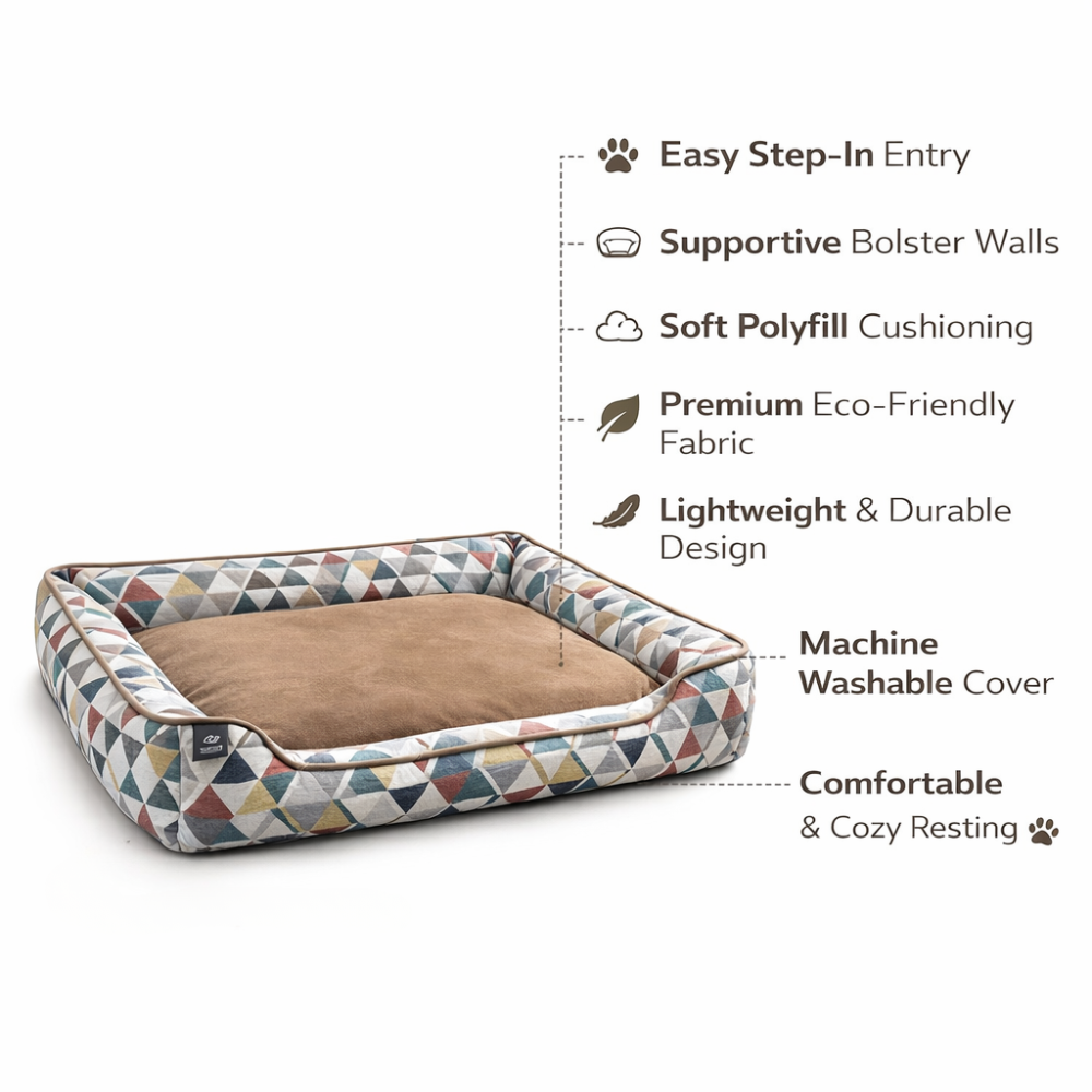 Whether it’s time for a nap, a mid-day rest, or a full night’s sleep, treat your dog to the perfect blend of support and comfort with the Multicolor Printed Cuddler Bed. Designed with a soft, inviting surface, this bed promises your dog a cozy retreat where they can rest and relax like never before.