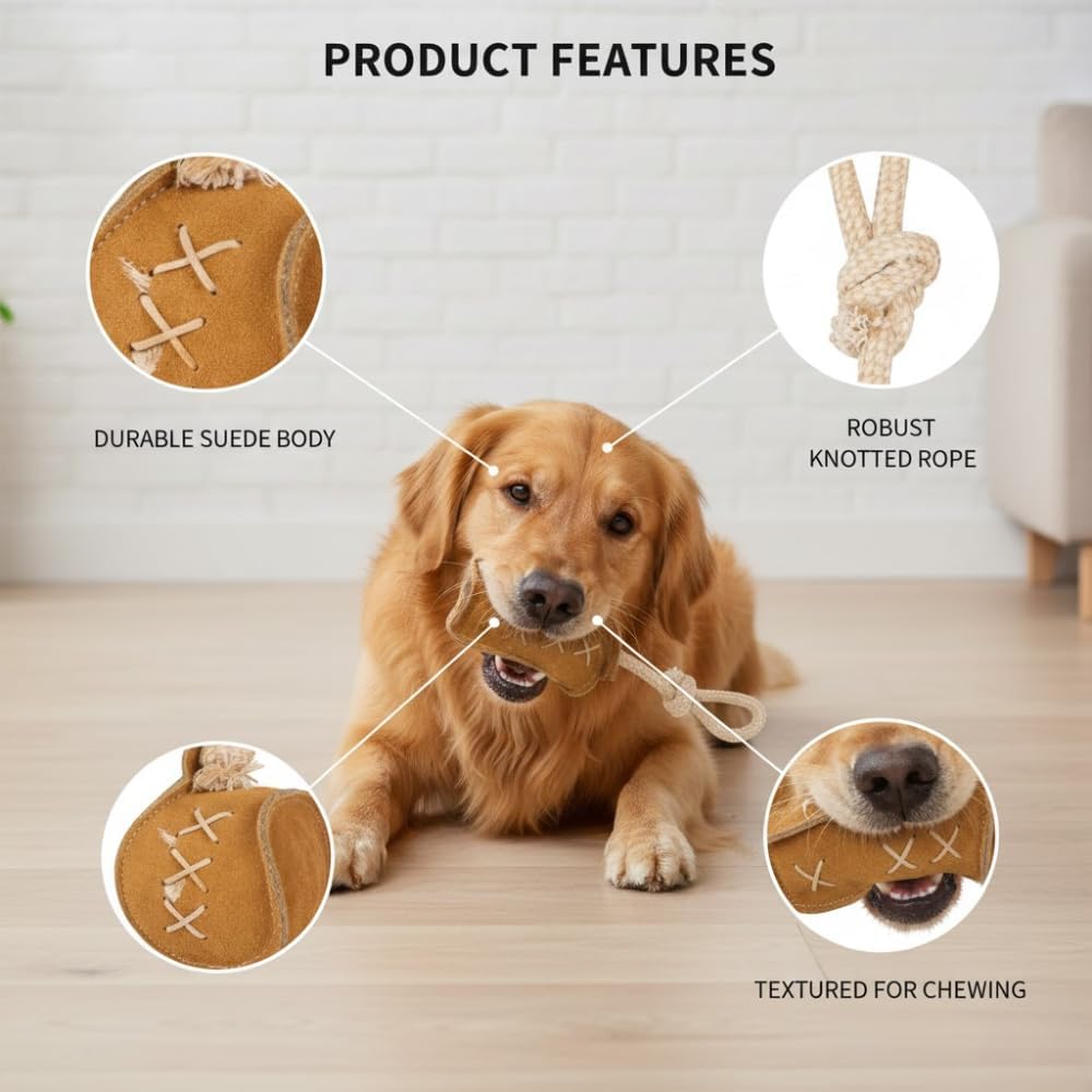 Whether it is a game of fetch or tug-of-war, keep your dogs constantly entertained with our Suede Toy. Our ball-like design is a constant delight for your furry friend that guarantees endless fun!