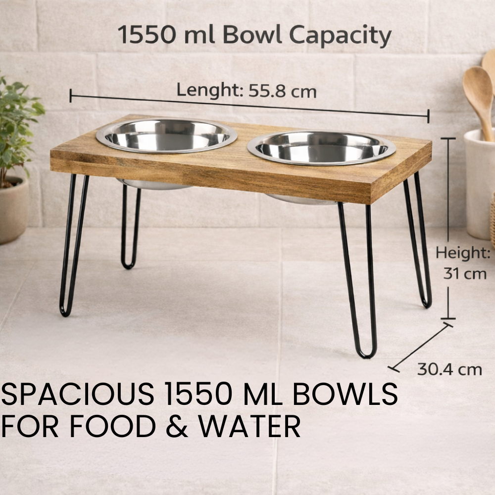 It allows for bigger breed dogs to bend less, thereby helping their posture and digestion. The set of bowls comes with a 1550 ML capacity each, which can be used for food & water.