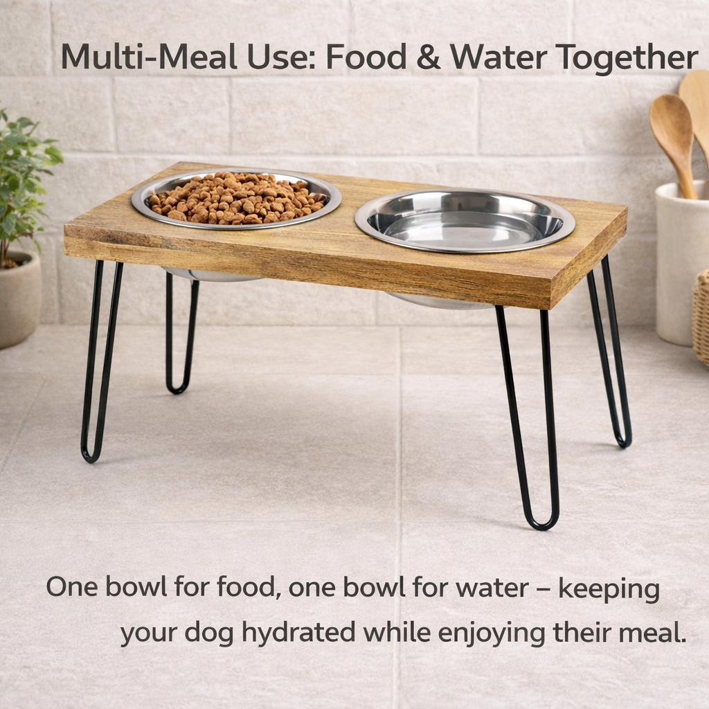 Durable - Constructed with a sturdy quality wood platform and 2 high-grade stainless steel bowls.