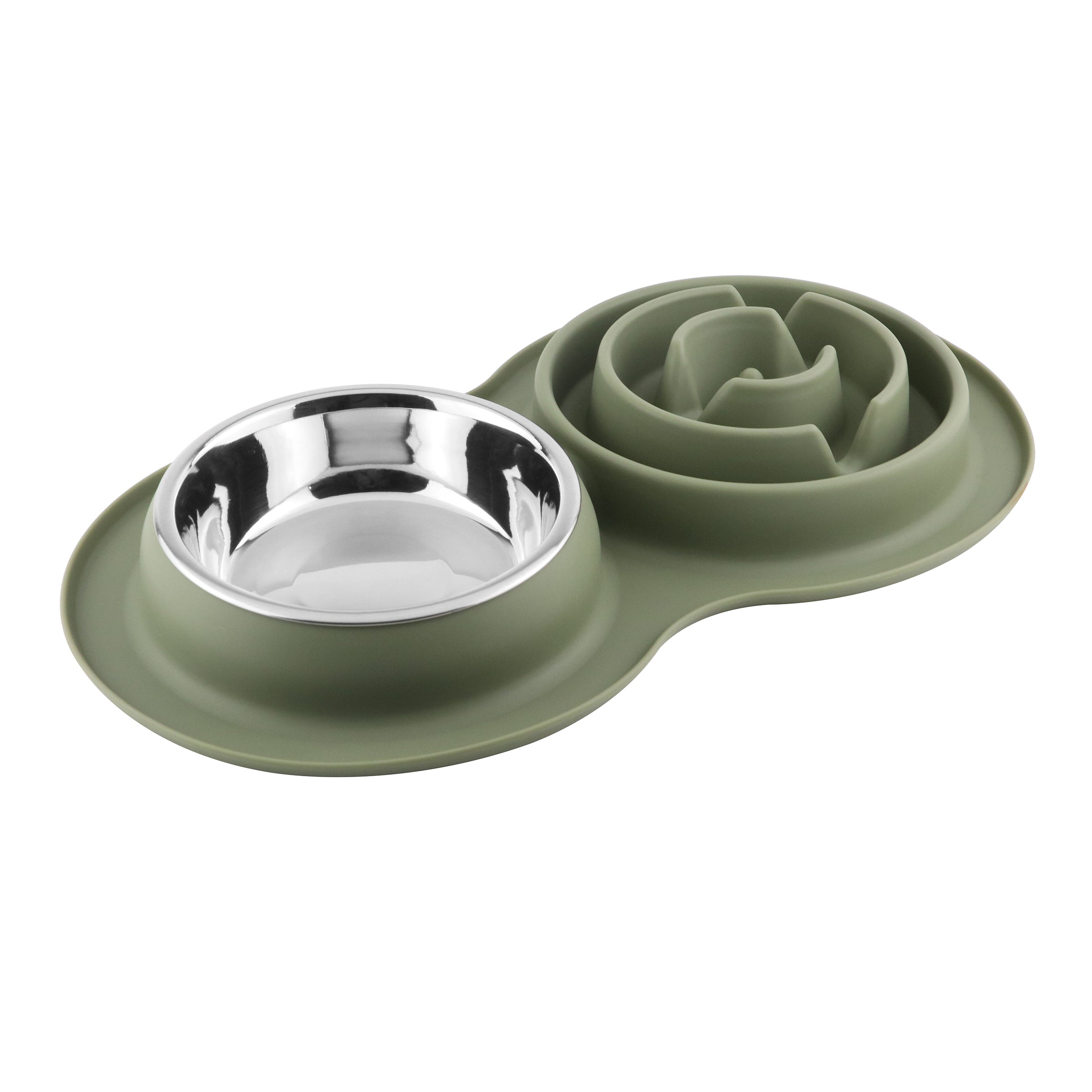 Enjoy a playful and non-messy eating experience with our one-of-a-kind silicone double bowl feeder - This design ensures your pet has a hassle-free meal with its non-skid & amp; non-slip features. The silicone base not only prevents damage to your floors but also holds the feeder firmly in place, so your pet can't easily overthrow the bowls.