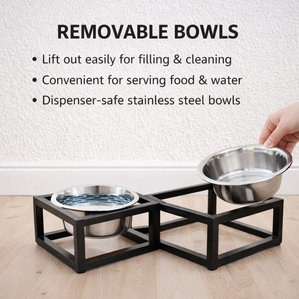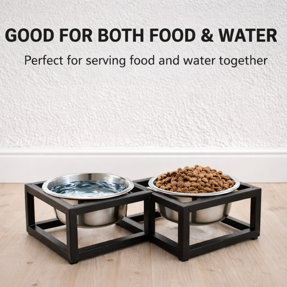 Material: This feeder has high grade stainless steel bowls with an iron stand. It's elegant design makes this product look aesthetic in your home/kitchen.